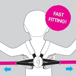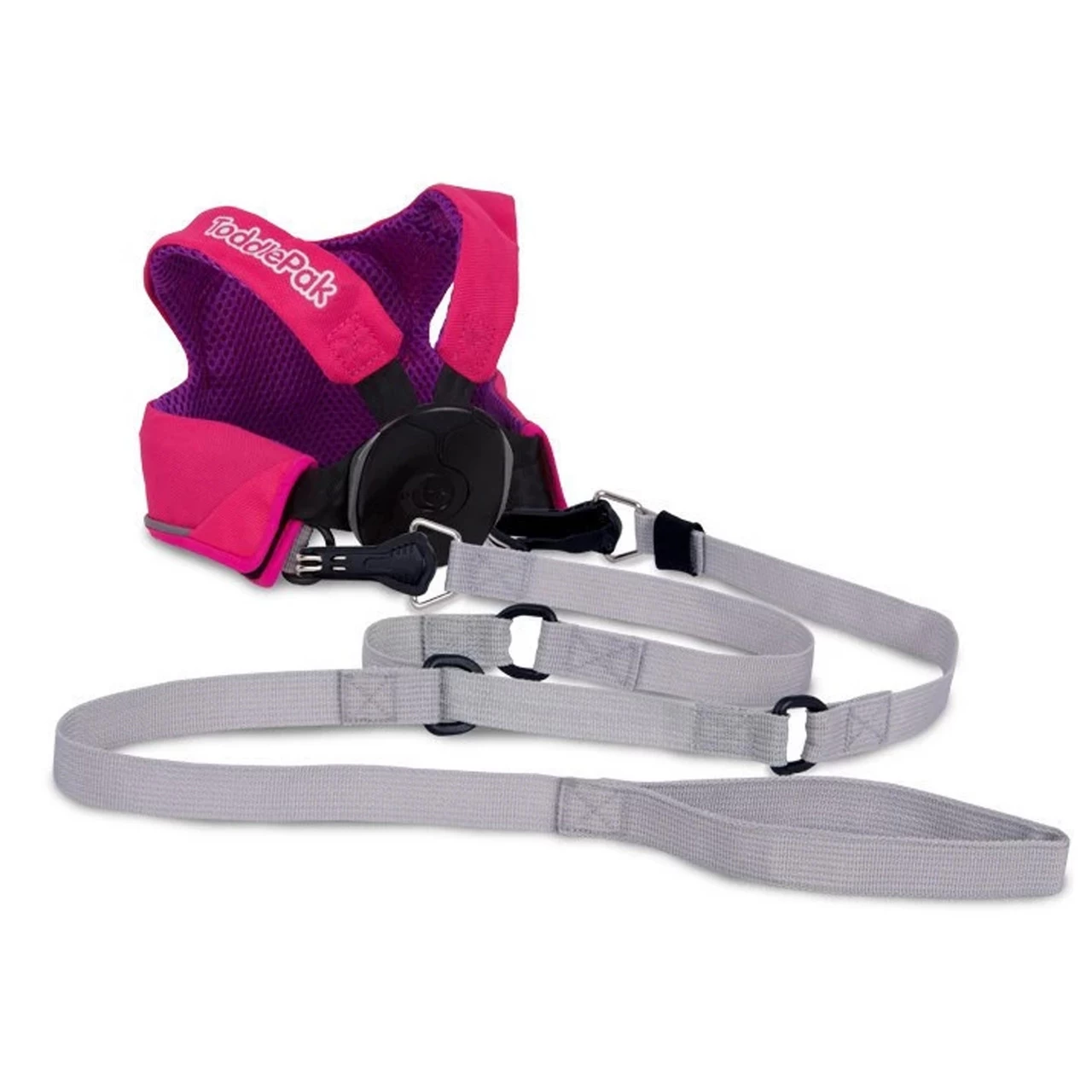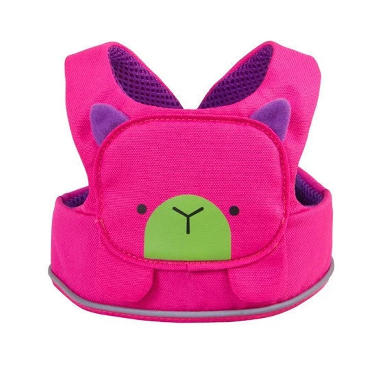 The pink Betsy Trunki ToddlePak is fuss-free toddler reins for keeping little ones safe when one and about. Fits from the front and fastens securely at the back in one quick, simple movement. The unique safety buckle allows parents to easily adjust the shoulder and waist straps simultaneously for a snug, secure fit. The fun animal face rein can be used both as a training rein for baby’s first steps and a bright leading harness for adventures!Â
